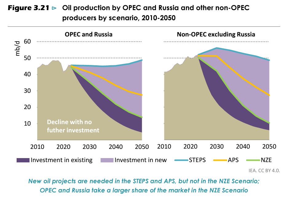 In 2050, when we speak about carbon neutrality in the second half of the century (reference to the Net Zero Emission or NZE scenario by 2050), we think that we’ll have something like 40 million barrils of oil per day (mb/d), but it’s not zero. It is much less than 100 million per day which is the current consumption. Clearly we will face a peak in oil production around 2030-2040, which will begin to decline.